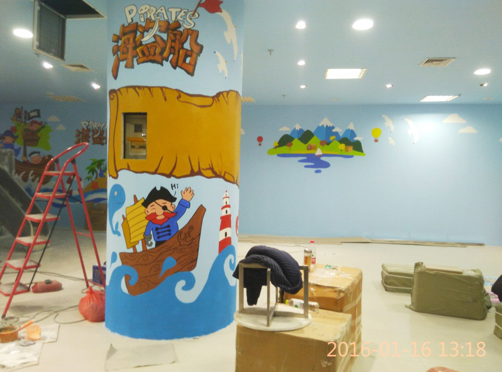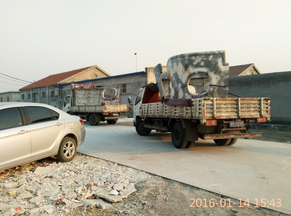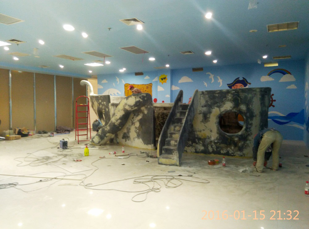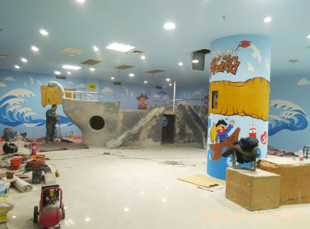 大型玻璃鋼游樂船雕塑竣工。2016年1月15-1月19日安裝于山東省濱州市黃河五路渤海十路銀座商城黃河店四樓。